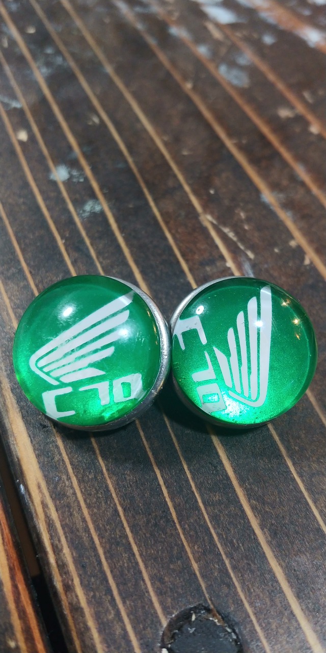 ホック用のアクセサリーパーツです。 ✱直径約22mm ✱裏はホックの♀️側15サイズです。 ★ヘルメットのホックサイズはほぼ共通なのでそのまま取り付けできます。 ※取り付けの際は破損に十分注意ください。向きは取り付け後に調整できます。 ※特に外す際はハサミ等で直接ホック部を挟んで外してください。 本体を引っ張ると壊れます。 ★オーダーデザイン 及び他に製品にあるデザインも受付ますのでお声がけください。 ★裏側のパーツ必要なかたはおこえがけください。 ★ネジ式とカシメ式がありますのでお付けします。