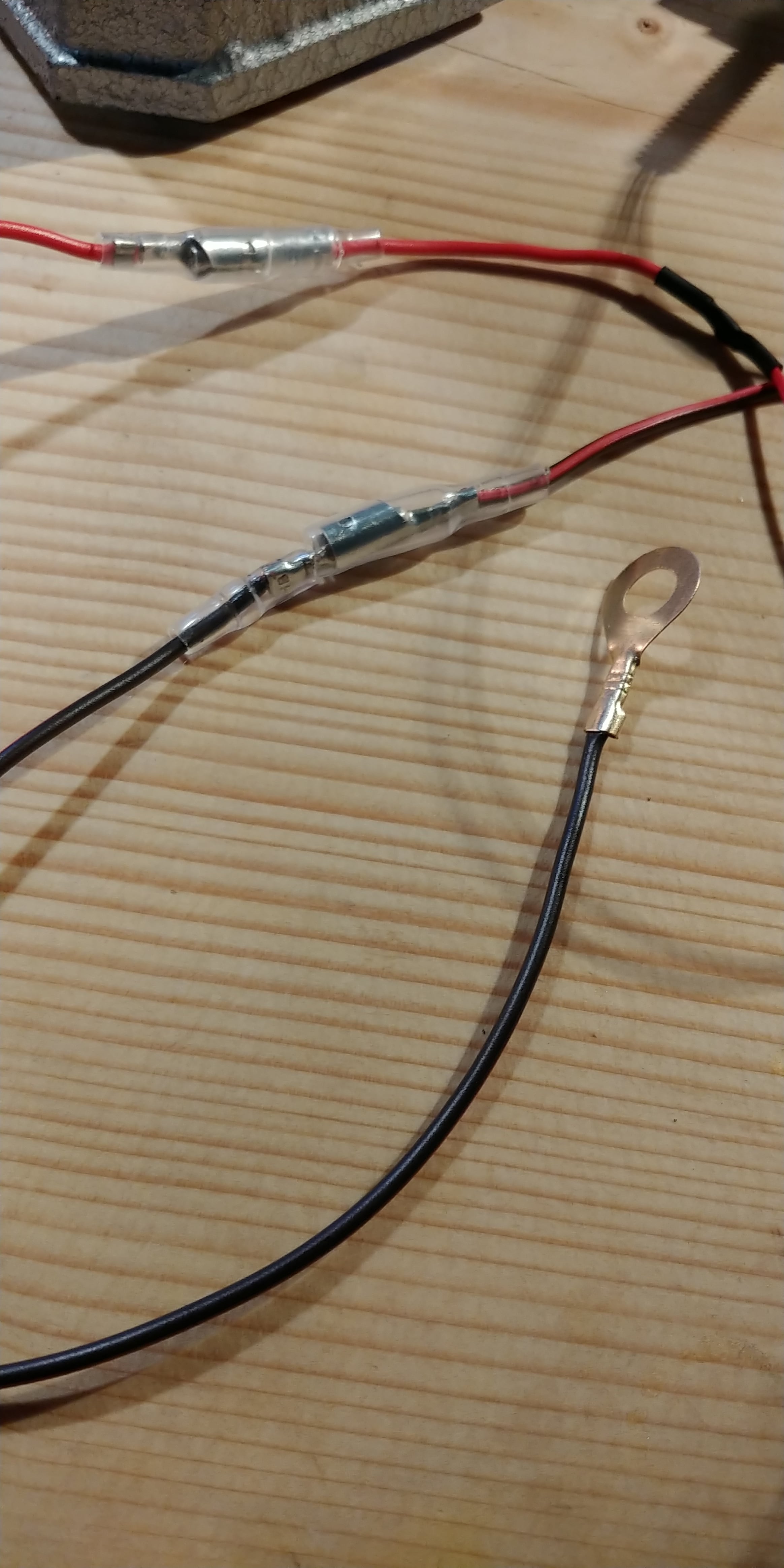 ②ナンバーボルトのナットを配線に通す(2本とも一旦ギボシを外す)